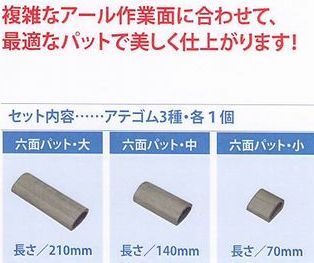 6面アールアテゴムセット![]() ![]() 複雑なアール面の研磨作業向けに3種類の当てゴムセットです。 |
