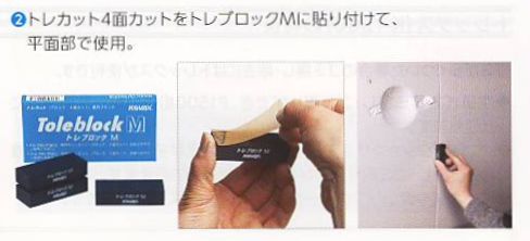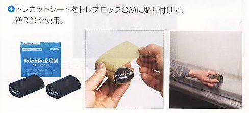 トレカット4面カットを貼り付けて使用します。平面部研磨用。 硬い特殊ゴム製で平滑にカットできます。 68mm×27mm×厚さ15mm 5個入 |